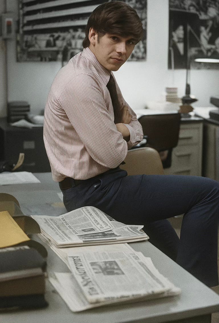 Also, I didn’t have to drive a forklift or work in a factory thick with airborne asbestos fibers, like in my previous jobs. They were paying me $84 a week, and I wouldn’t even have to get dirty unless you counted some ink stains from reading newspapers hot off the presses.